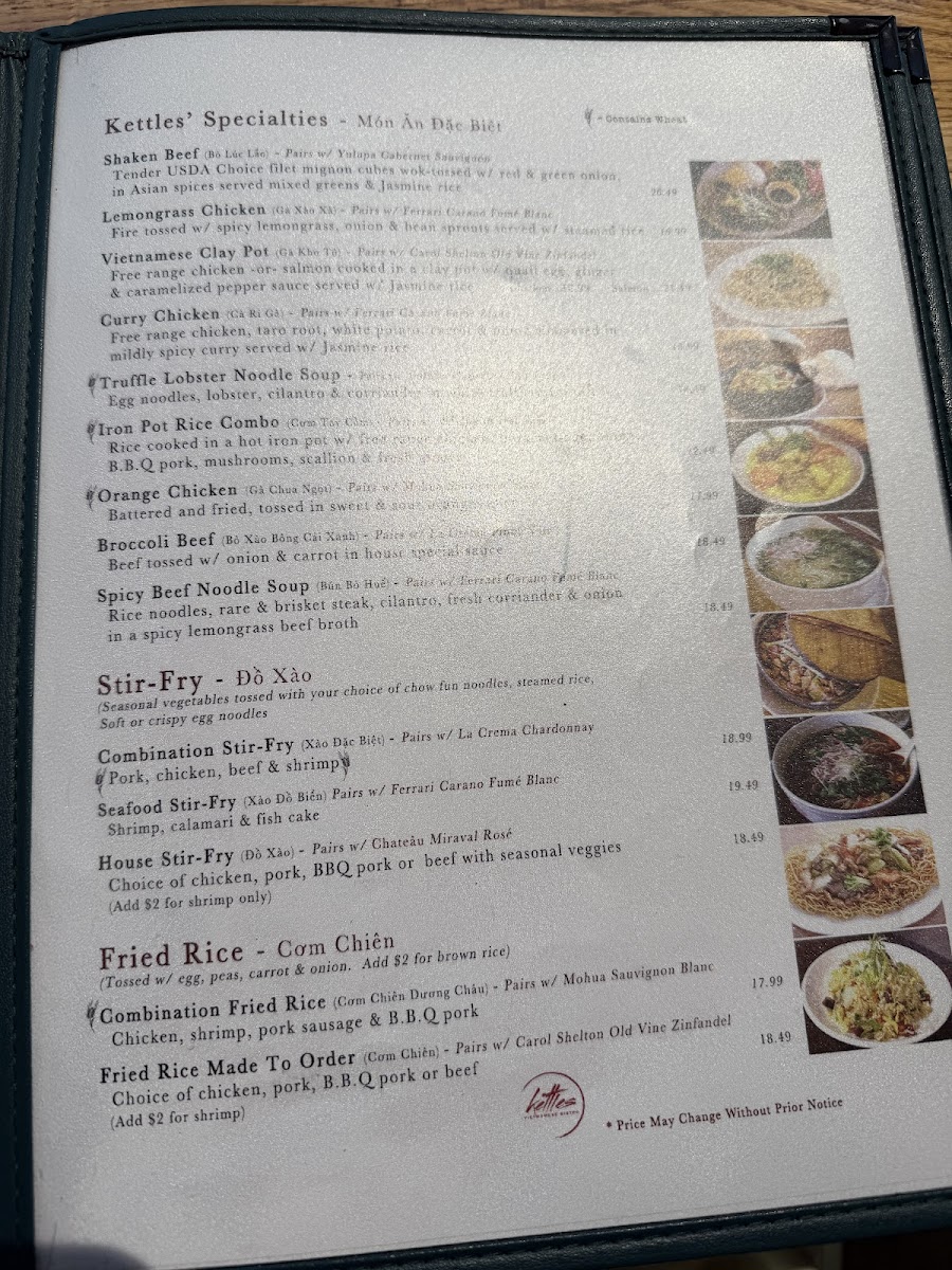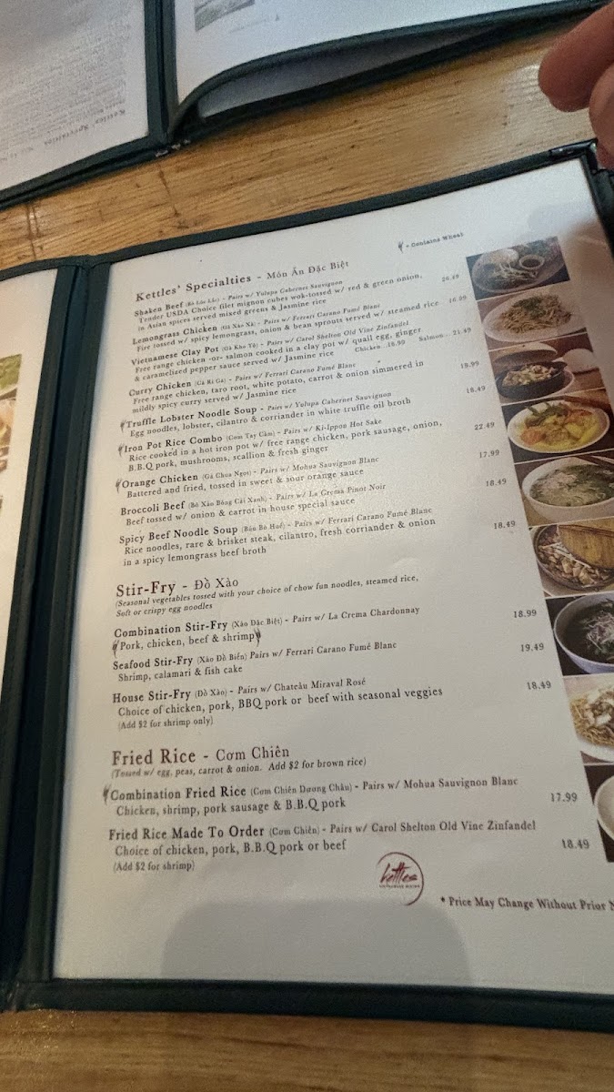 Free range chicken -or- salmon cooked with quail egg in a clay pot with ginger & caramelized pepper sauce served with jasmine rice.