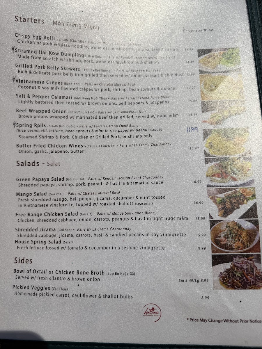 Vegan, vegetarian. Shredded mango, bell pepper, jicama, cucumber, mint, roasted shallots, & Vietnamese vinaigrette.